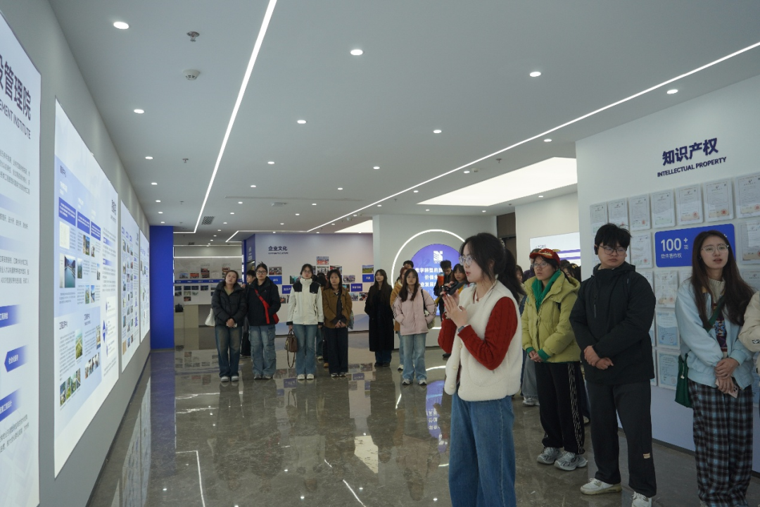 這場研學(xué)在水院展廳拉開序幕。在講解員的引導(dǎo)下,研學(xué)團(tuán)通過豐富的圖文資料,在展廳沉浸式了解我院的發(fā)展歷程、成果業(yè)績、企業(yè)文化,全方位感知我院在涉水產(chǎn)業(yè)、科技創(chuàng)新、團(tuán)隊(duì)建設(shè)等領(lǐng)域的綜合實(shí)力與發(fā)展成果。每一塊展板都在訴說著寧波院人砥礪前行的故事,讓同學(xué)們對(duì)水利行業(yè)有了更直觀、更深刻的認(rèn)識(shí)。