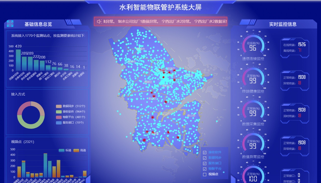 智慧水利物聯(lián)管護(hù)平臺,對水利各部門、各廠商、各類型監(jiān)測設(shè)備的,健康狀態(tài)與數(shù)據(jù)傳輸?shù)冗M(jìn)行統(tǒng)一管理,實(shí)現(xiàn)水利要素實(shí)時(shí)“感知-互聯(lián)”,強(qiáng)化水利物聯(lián)感知監(jiān)管,為智慧水利建設(shè)提供基礎(chǔ)支撐。