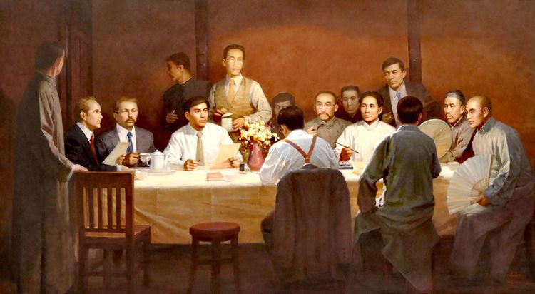 7月23日晚,中國共產(chǎn)黨第一次全國代表大會在上海法租界望志路106號(今興業(yè)路76號)正式開幕。會址設在李書城、李漢俊兄弟住宅,大家圍坐在客廳長餐桌四周,室內沒有特別布置,陳設簡單,氣氛莊重。出席者有上海的李漢俊、李達;北京的張國燾、劉仁靜;長沙的毛澤東、何叔衡;武漢的董必武、陳潭秋;濟南的王盡美、鄧恩銘;廣州的陳公博;留日學生周佛海以及陳獨秀委派的包惠僧。陳獨秀和李大釗因公務在身未出席會議,而在代表們心目中他們仍是黨的主要創(chuàng)始人和領袖。