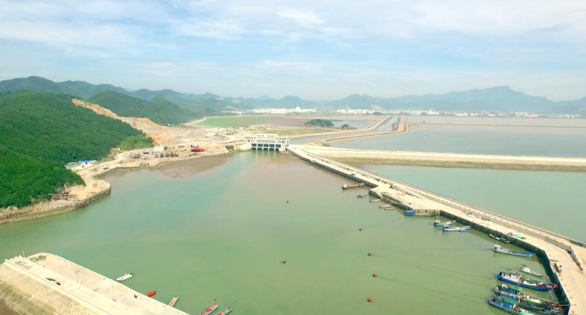 工程圍涂面積2.12萬畝,海堤全長約5345m。工程項目由海堤、水閘、排澇河、防波堤、船閘、交通堤、交通橋等組成。海堤工程包括南堤4508.3m、北堤840m;水閘工程炮臺山主排閘5孔×8m、飯桶山主納閘凈寬4孔×8m、貓頭納排閘3孔×3m、竹灣沖沙閘1孔×3m;河道工程包括炮臺山河道3081m、貓頭納排河2390m、白巖山主排河1300m、飯桶山主排河(3064m)以及南區(qū)納潮干河(4073m);防波堤長為703.87m;船閘凈寬10m;交通工程包括Ⅰ號交通堤、Ⅱ號交通堤及北分支、南分支交通堤,施工道路、竹灣碼頭、竹灣錨地、毛灣碼頭及防波堤、1#交通橋、2#交通橋。