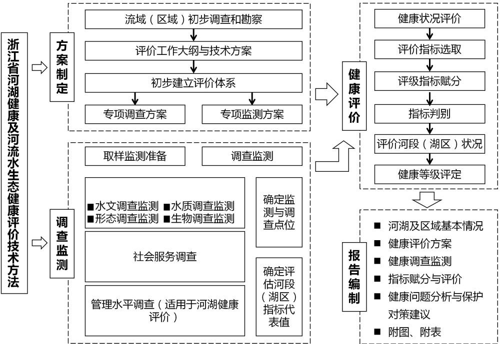 根據(jù)《浙江省河湖健康及水生態(tài)健康評價指南(試行)》要求,將奉化江作為評價單元,并劃分評價河段。在評價河段處設(shè)置監(jiān)測斷面,構(gòu)建河流水文、水質(zhì)、形態(tài)、生物、社會服務(wù)及河湖管理六大類的綜合評價體系,通過采集各監(jiān)測斷面的生物樣品,對樣品進(jìn)行實(shí)驗(yàn)室分析處理,得出各指標(biāo)的監(jiān)測數(shù)據(jù)。最后根據(jù)多指標(biāo)綜合分析評價法進(jìn)行奉化江干流河流健康得分計算,利用不同顏色進(jìn)行表征,直觀地表示全流域河流健康狀況。