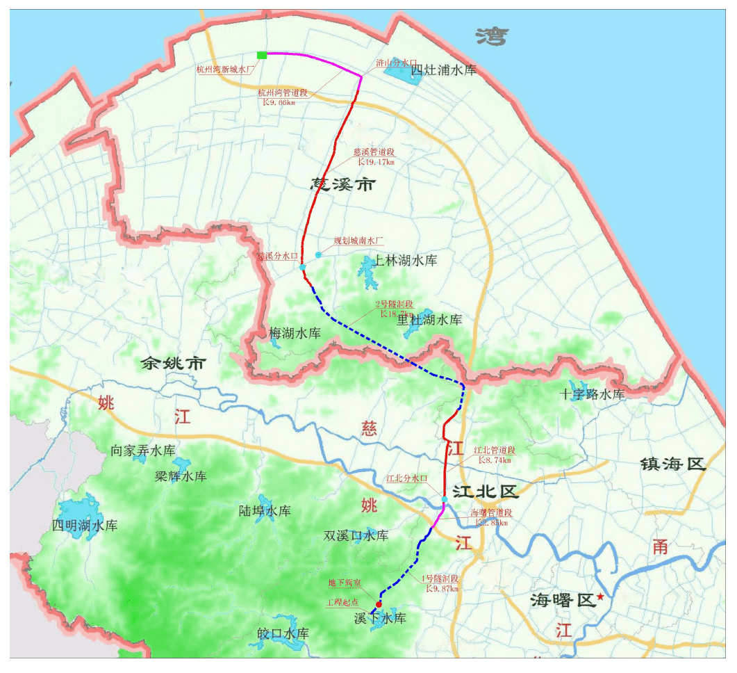 通過本工程的建設(shè)可實現(xiàn)寧波向慈溪市補充優(yōu)質(zhì)原水1500萬m3/a,向杭州灣新區(qū)補充優(yōu)質(zhì)原水2000萬m3/a,以減輕未來慈溪市和杭州灣新區(qū)優(yōu)質(zhì)水用水壓力,填補2020水平年的優(yōu)質(zhì)水需水缺口、補充2030水平年的部分優(yōu)質(zhì)水需水缺口。