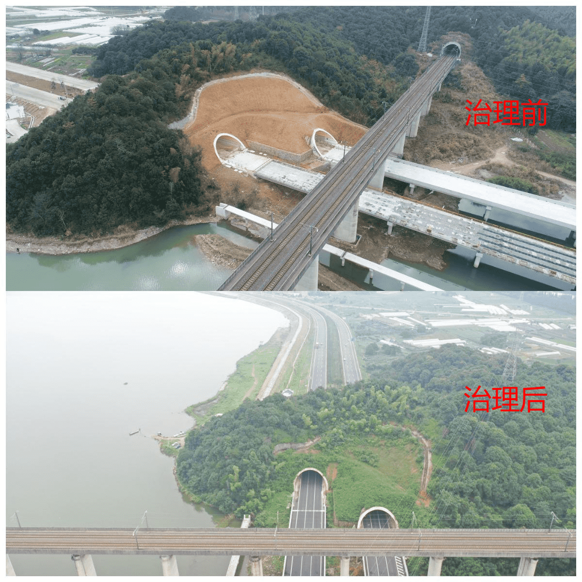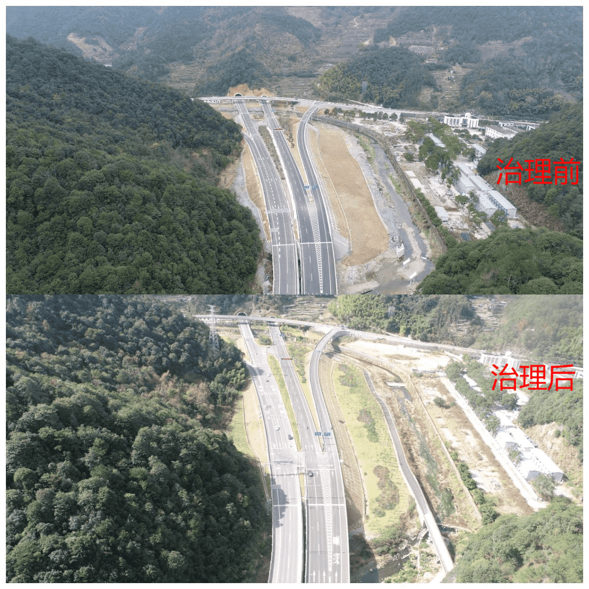 寧波市寧海縣38省道寧海橋頭胡至深甽段改建工程線路路線全長22.161km,共有大橋2316.36m/9座,中小橋463.64m/16座,涵洞113道,連拱隧道735m/2座;分離式隧道2480m/2座,平面交叉21處,分離式立交2處,互通式立交5處;交通安全、服務(wù)、管理設(shè)施22.161km。工程跨越地形條件復(fù)雜,包含多處橋涵工程、隧道工程和改河工程等。2012年,我單位受寧海縣交通運輸局委托開展該工程水土保持工作。為減少生產(chǎn)建設(shè)過程中產(chǎn)生水土流失,我院通過實地勘探掌握項目沿線自然條件,并結(jié)合主體設(shè)計資料,編制水土保持方案,為生產(chǎn)建設(shè)單位提供水土保持依據(jù)。且在建設(shè)過程中,我院為生產(chǎn)建設(shè)單位提供水土保持技術(shù)支撐,通過無人機、測釬等技術(shù)手段開展建設(shè)過程水土保持監(jiān)測,避免建設(shè)過程中出現(xiàn)水土流失隱患和問題。該項目已于2021年完成水土保持設(shè)施驗收工作。