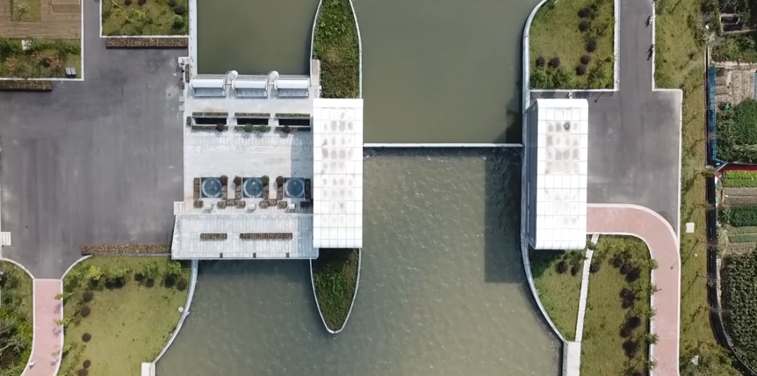 工程規(guī)劃與區(qū)域發(fā)展規(guī)劃高度融合,打通了原洞船河與姚江之間的“斷頭路”,提高了鄞西平原城區(qū)的防洪排澇能力。項目建筑設計與周邊環(huán)境完美結合。泵站及閘門上部采用無廠房設計,水泵機組采用立式潛水機組,閘門采用底軸驅動翻板門,泵站上下游視野通透,觀感效果佳。管理房屋頂設計為綠化屋頂,管理房隱藏于周邊綠化之中,滿足姚江岸高標準景觀要求。生態(tài)河道設計符合人文和諧之美。護岸采用干壘生態(tài)擋塊,中間預留魚槽設計,充分體現(xiàn)了生態(tài)環(huán)保設計理念。