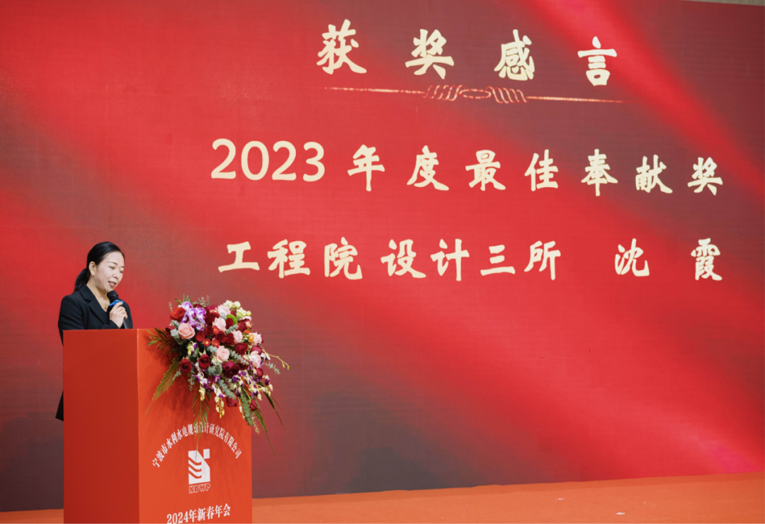 2023年度先進(jìn)工作者獲獎(jiǎng)代表勘察院勘察二所的湯文勇、2023年度最佳奉獻(xiàn)獎(jiǎng)獲獎(jiǎng)?wù)吖こ淘涸O(shè)計(jì)三所的沈霞、2023年度最佳新人獎(jiǎng)獲獎(jiǎng)代表規(guī)劃院規(guī)劃二所的魯經(jīng)宇,先后上臺(tái)發(fā)表獲獎(jiǎng)感言,以真摯的情感、質(zhì)樸的語言和滿滿的憧憬,表達(dá)了自己與企業(yè)共同成長過程中的勵(lì)志故事和切身感悟,表達(dá)了寧波院中堅(jiān)力量、團(tuán)隊(duì)骨干和新兵后輩的豪情壯志。