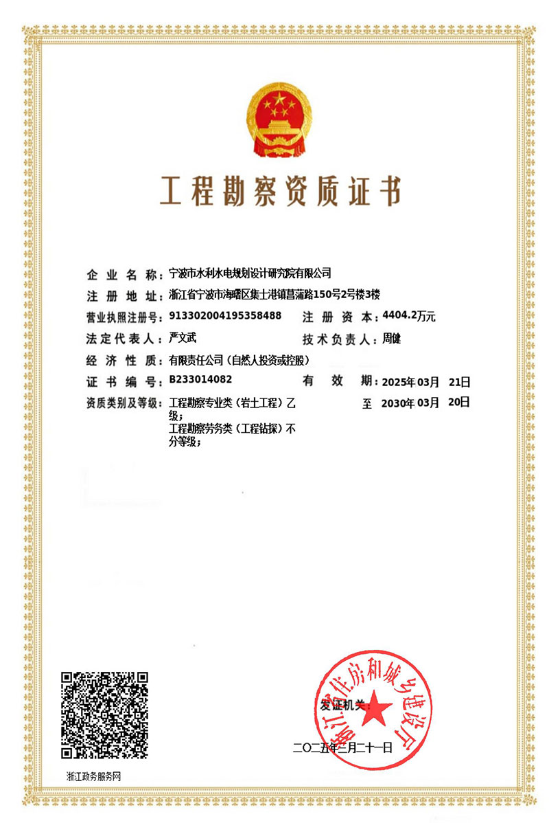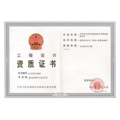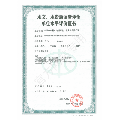 寧波院具有水利水電工程設(shè)計(jì)、工程勘察、工程咨詢、水土保持、水資源論證等多項(xiàng)資質(zhì)。承擔(dān)中小河流域規(guī)劃、水庫、河道整治、灘涂圍墾等工程的勘察、設(shè)計(jì)、咨詢、總承包業(yè)務(wù),以及各領(lǐng)域建設(shè)項(xiàng)目的防洪評(píng)價(jià)、水資源論證、水土保持方案編制、水土保持監(jiān)測(cè)、計(jì)算機(jī)行業(yè)CMMI 3級(jí)認(rèn)證、知識(shí)產(chǎn)權(quán)管理體系認(rèn)證等。